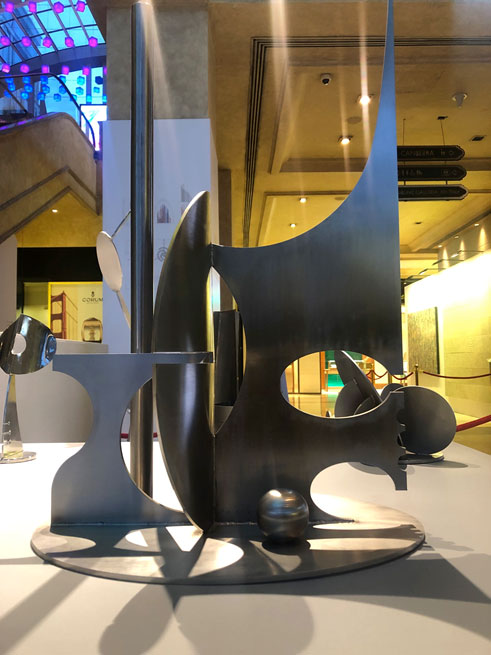 The 2018 edition of Art Bengaluru brings together 17 Indian artists across 24 exhibits to UB City. The festival begins at the foyer with two stainless steel sculpture exhibits by pre-eminent artist Balan Nambiar. A master with over 60 years of experience, Mr. Nambiar’s forms dance elegantly between symmetry and asymmetry, and are often inspired by childhood memories and symbols associated with the ritual arts. He will also be showcasing a body of jewellery enameled paintings that have never been exhibited previously and a selection of mild steel sculptures on the ground floor and piazza respectively. Gurudas Shenoy’s natural and urban semi-abstract canvases appear next – with an extensive collection at Sublime Galleria on the 8th floor as well. Kavita Jaiswal subsequently contemplates existentialism and perception through abstraction via mixed media works on canvas across two exhibits at the luxury corridor entrance. Moving inwards, Vipta Kapadia’s ephemeral abstractions in oils juxtapose Chandan Bhowmick’s vivid terrestrial abstractions in acrylic opposite Louis Vuitton and Burberry. This section transitions into the next with large linear hillscapes in pen and ink on paper from 1986 by D Venkatapathy – the senior most living founder member of the Cholamandal Artist Village and an important member of the Madras Art Movement.