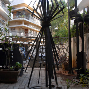 The centrally located exhibits of the 2nd floor showcase works by Parvathi Nayar, Romicon Revola, Ashu Gupta and Saju Kunhan. Parvathi’s exhibit explores water in its simultaneous ubiquity and scarcity, portrayed through the entire spectrum of perspective – from bird’s eye to microscopic. Romicon showcases two video projects and a central sculpture: the former meditates on a single drop of water and the latter engages with the phenomenon of the urban sprawl, while the sculpture attempts to address them both. Ashu, the festival’s youngest artist, attempts to reconcile her despair about Bangalore’s lost trees through a series of pen and ink drawings on canvas. The bridge features the largest work of the festival: a 30’ by 8’ oil on canvas by Saju Kunhan that, despite being created in 2011, has never been previously exhibited due to a lack of a large enough exhibition space. Inspired by Saju’s first experience of a “mega city” – Mumbai – the detail and scale of the work is mesmerising and should not be missed.