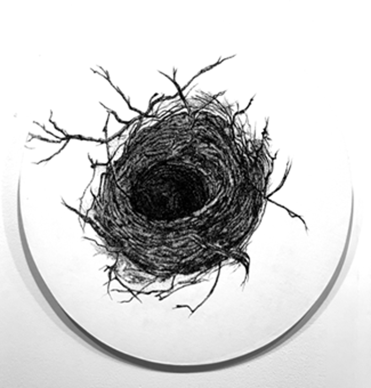 The centrally located exhibits of the 2nd floor showcase works by Parvathi Nayar, Romicon Revola, Ashu Gupta and Saju Kunhan. Parvathi’s exhibit explores water in its simultaneous ubiquity and scarcity, portrayed through the entire spectrum of perspective – from bird’s eye to microscopic. Romicon showcases two video projects and a central sculpture: the former meditates on a single drop of water and the latter engages with the phenomenon of the urban sprawl, while the sculpture attempts to address them both. Ashu, the festival’s youngest artist, attempts to reconcile her despair about Bangalore’s lost trees through a series of pen and ink drawings on canvas. The bridge features the largest work of the festival: a 30’ by 8’ oil on canvas by Saju Kunhan that, despite being created in 2011, has never been previously exhibited due to a lack of a large enough exhibition space. Inspired by Saju’s first experience of a “mega city” – Mumbai – the detail and scale of the work is mesmerising and should not be missed.