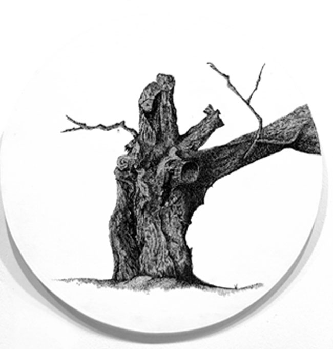 The centrally located exhibits of the 2nd floor showcase works by Parvathi Nayar, Romicon Revola, Ashu Gupta and Saju Kunhan. Parvathi’s exhibit explores water in its simultaneous ubiquity and scarcity, portrayed through the entire spectrum of perspective – from bird’s eye to microscopic. Romicon showcases two video projects and a central sculpture: the former meditates on a single drop of water and the latter engages with the phenomenon of the urban sprawl, while the sculpture attempts to address them both. Ashu, the festival’s youngest artist, attempts to reconcile her despair about Bangalore’s lost trees through a series of pen and ink drawings on canvas. The bridge features the largest work of the festival: a 30’ by 8’ oil on canvas by Saju Kunhan that, despite being created in 2011, has never been previously exhibited due to a lack of a large enough exhibition space. Inspired by Saju’s first experience of a “mega city” – Mumbai – the detail and scale of the work is mesmerising and should not be missed.