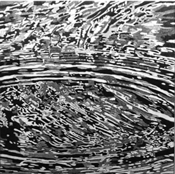 The centrally located exhibits of the 2nd floor showcase works by Parvathi Nayar, Romicon Revola, Ashu Gupta and Saju Kunhan. Parvathi’s exhibit explores water in its simultaneous ubiquity and scarcity, portrayed through the entire spectrum of perspective – from bird’s eye to microscopic. Romicon showcases two video projects and a central sculpture: the former meditates on a single drop of water and the latter engages with the phenomenon of the urban sprawl, while the sculpture attempts to address them both. Ashu, the festival’s youngest artist, attempts to reconcile her despair about Bangalore’s lost trees through a series of pen and ink drawings on canvas. The bridge features the largest work of the festival: a 30’ by 8’ oil on canvas by Saju Kunhan that, despite being created in 2011, has never been previously exhibited due to a lack of a large enough exhibition space. Inspired by Saju’s first experience of a “mega city” – Mumbai – the detail and scale of the work is mesmerising and should not be missed.