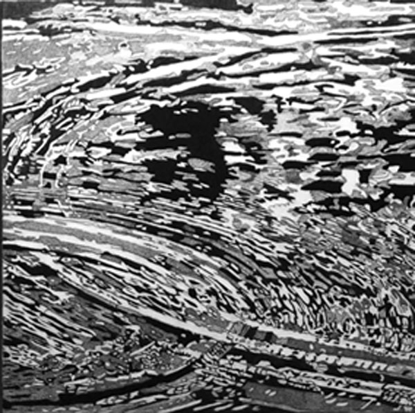 The centrally located exhibits of the 2nd floor showcase works by Parvathi Nayar, Romicon Revola, Ashu Gupta and Saju Kunhan. Parvathi’s exhibit explores water in its simultaneous ubiquity and scarcity, portrayed through the entire spectrum of perspective – from bird’s eye to microscopic. Romicon showcases two video projects and a central sculpture: the former meditates on a single drop of water and the latter engages with the phenomenon of the urban sprawl, while the sculpture attempts to address them both. Ashu, the festival’s youngest artist, attempts to reconcile her despair about Bangalore’s lost trees through a series of pen and ink drawings on canvas. The bridge features the largest work of the festival: a 30’ by 8’ oil on canvas by Saju Kunhan that, despite being created in 2011, has never been previously exhibited due to a lack of a large enough exhibition space. Inspired by Saju’s first experience of a “mega city” – Mumbai – the detail and scale of the work is mesmerising and should not be missed.