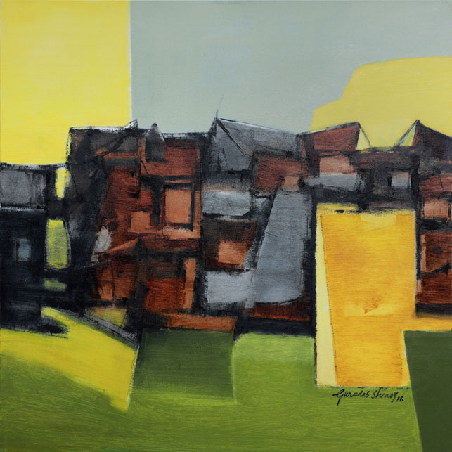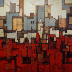 The 2018 edition of Art Bengaluru brings together 17 Indian artists across 24 exhibits to UB City. The festival begins at the foyer with two stainless steel sculpture exhibits by pre-eminent artist Balan Nambiar. A master with over 60 years of experience, Mr. Nambiar’s forms dance elegantly between symmetry and asymmetry, and are often inspired by childhood memories and symbols associated with the ritual arts. He will also be showcasing a body of jewellery enameled paintings that have never been exhibited previously and a selection of mild steel sculptures on the ground floor and piazza respectively. Gurudas Shenoy’s natural and urban semi-abstract canvases appear next – with an extensive collection at Sublime Galleria on the 8th floor as well. Kavita Jaiswal subsequently contemplates existentialism and perception through abstraction via mixed media works on canvas across two exhibits at the luxury corridor entrance. Moving inwards, Vipta Kapadia’s ephemeral abstractions in oils juxtapose Chandan Bhowmick’s vivid terrestrial abstractions in acrylic opposite Louis Vuitton and Burberry. This section transitions into the next with large linear hillscapes in pen and ink on paper from 1986 by D Venkatapathy – the senior most living founder member of the Cholamandal Artist Village and an important member of the Madras Art Movement.